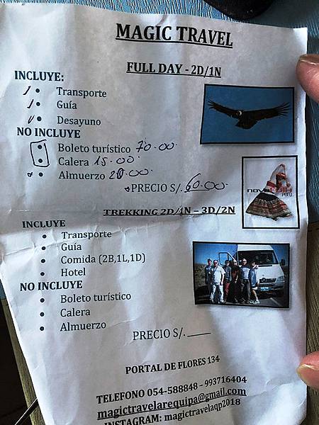 今天的Colca Canyon 1日遊,是昨天武器廣場附近找的,一間名叫「Magic travel」 旅行社